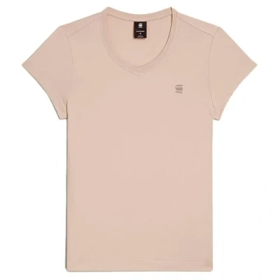 G STAR Women's Eyben Slim V Neck Top 2.0 T Shirt, Beige (Dk Brick D24533 4107 1214), S