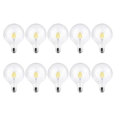 G.W.S® LED Filament Bulb, G125 E27 Edison Screw, Globe 8W Dimmable Day White 6400K, Clear Glass, Pack of 10
