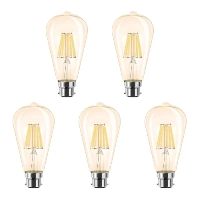 G.W.S LED Filament Bulb, ST64 B22 Bayonet, LED Pear Bulb, 8W Dimmable Warm White 2700K, Amber Glass, Pack of 5 Product type: LIGHT_BULB Brand: G.W.S Size: Pack of 5, Manufacturer: G.W.S LED