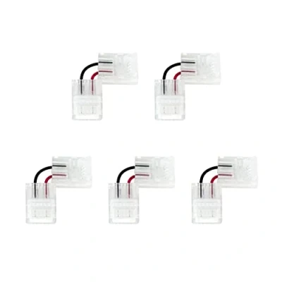 G.W.S® Pack of 5, 2 Pin Quick Fit Flex L Shape Corner Connectors for 12mm Wide Single Colour LED Strip Lights