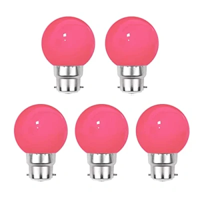 G.W.S® Pack of 5, B22 Bayonet 3W Pink, G45 LED Coloured Light Bulb, Garden Party Wedding Festoon Lights