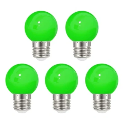 G.W.S® Pack of 5, E27 Screw 3W Green, G45 LED Coloured Light Bulb, Garden Party Wedding Festoon Lights