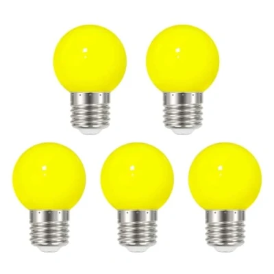 G.W.S® Pack of 5, E27 Screw 3W Yellow, G45 LED Coloured Light Bulb, Garden Party Wedding Festoon Lights