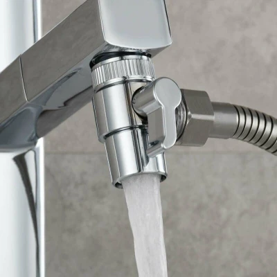 Key Features Switch water flow between faucet and sprayer Connection Size Suitable for kitchen sink faucet or bathroom sink faucet, 1/2" Threads fits most shower heads and shower hoses Easy to install, comes with everything you need to start using it immediately Specification Finished: Chrome Body Material: Brass Connection Size: M22 x M24 (Please check your connection size before purchase) Installation Method: Screw in Package Included 1 x Faucet Diverter M22 2 x Rubber Gaskets 1 x M22 to M24 Male Adapter It does not include the shower hose and sprayer head.