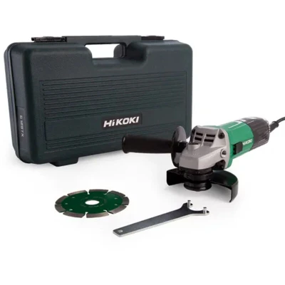 General description The HiKOKI G12STX/CD 115mm (4-1/2") Angle Grinder is a powerful and compact tool designed for various applications. It features a robust 600W motor with excellent overload durability, making it ideal for tasks such as removing casting fins, finishing steel, bronze, and aluminum materials, grinding welded sections, and cutting through synthetic concrete, stone, brick, and marble. The grinder is equipped with a top-mounted on/off switch and a no voltage restart protection feature that prevents accidental restarts after power interruptions. Technical specifications Power Input: 600W No-load Speed: 110V: 12000/min, 230V: 11500/min Wheel Diameter: 115mm Bore: 22.23mm Spindle Thread: M14 x 2 Overall Length: 254mm Weight: 1.8kg Compatibility and accessories Includes: 1 x HiKOKI G12STX/CD Angle Grinder 1 x Side Handle 1 x Wrench 1 x Diamond Blade 1 x Carry Case Other information