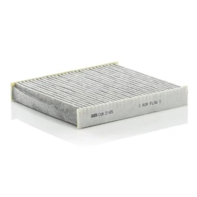 MANN-FILTER Cabin Air Filter CUK 2145 / Dimensions (mm): A = 210; B = 185; H = 30 / Premium Filter in Original Equipment Quality High-quality MANN-FILTER cabin filters with active carbon - nearly 100% protection from particles like pollen, diesel soot & tyre abrasion / Additional protection from harmful gases & unpleasant odour The trated highly-effective activated carbon gives protection against harmful gases such as ozone, nitrogen oxide or sulphur dioxide and eliminates unpleasant odours during the entire service interval Looking to find the correct filter? Select: brand, model, vehicle type, and engine type above to see which one fits your vehicle MANN+HUMMEL complies with REACH-regulation + supports the goal of Improved health and safety through the design, manufacturing, usage, disposal and recycling of our products