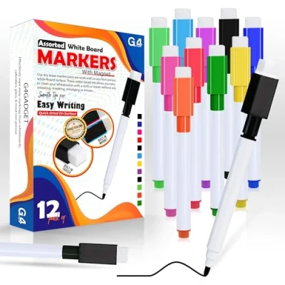 ✅ Magnetic & Eraser Cap Design: Each G4GADGET dry wipe pen features a strong magnet for easy attachment to any whiteboard or fridge, plus a built-in eraser for quick and clean corrections. ✅ 12 Vibrant Colours: Includes a full set of assorted whiteboard markers, perfect for highlighting, teaching, presentations, or creative planning — adding clarity and energy to every idea. ✅ Smooth & Effortless Writing: Fine fibre tips ensure consistent ink flow and smooth writing on all non-porous surfaces like whiteboards, glass, and mirrors — without streaking or smudging. ✅ Safe & Low Odor Ink: Made with non-toxic, eco-friendly, low-odor ink — safe for kids and comfortable for teachers, students, and office users. ✅ Ideal for Home, School & Office: Perfect for whiteboard teaching, brainstorming, fridge planners, calendars, or kids’ learning boards — reliable, colourful, and mess-free writing every time.