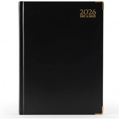 A5 Day to Page 2026 Diary View In Saturday Sunday With Ruled Sections And Ribbon Page Marker 80gsm Paper, Padded Front, Hardback Cover With Gilt Edge Corners Includes Accounts, Notes, Telephone Numbers, Conversion and Information pages Executive Style Good quality perfect for Business People for any occassion: Home, Office, Business