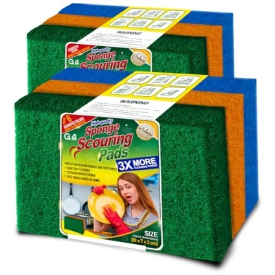 🧽 Powerful Dual-Sided Scrub – Tackle tough stains with the coarse scouring surface that easily removes burnt food, grease, and grime, while the soft absorbent sponge side wipes clean without scratching. 🧽 Heavy Duty Durability – Built to last longer than regular kitchen sponges, these thick pads maintain their shape and effectiveness through multiple washes and scrubs. 🧽 Extra Absorbent Foam Core – Designed for maximum soap retention and faster cleaning. Ideal for dishes, countertops, sinks, and even bathroom tiles. 🧽 Multi-Surface Cleaning – Perfect for kitchen utensils, pots, pans, ovens, and car exteriors or interiors. Safe for use on stainless steel, glass, ceramics, and non-stick surfaces. 🧽 Hygienic & Easy to Maintain – Quick-drying and odor-resistant to prevent bacteria buildup. Simply rinse after use to keep your sponge fresh and ready for next time.