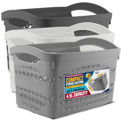 🧺 Multi-Purpose Storage Solution – Perfect for organising any space in your home — use it for toiletries, cleaning products, snacks, stationery, toys, or laundry accessories. 🧺 Strong & Lightweight Construction – Crafted from premium-quality plastic, this basket offers durability for daily use while staying lightweight and easy to carry around. 🧺 Built-In Handles for Easy Grip – Designed with sturdy side handles, making it effortless to lift, move, or pull from shelves and cupboards — ideal for home and office use. 🧺 Modern Rattan-Style Design – Features a decorative open-weave pattern that promotes ventilation while adding a touch of modern elegance to your storage setup. 🧺 Random Colour Selection – You will receive 1× basket in a random colour from our assorted set of 3 stylish tones, giving your space a surprise pop of colour., Manufacturer: G4GADGET