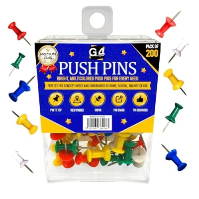 G4GADGET Push Pins 200 Pack Assorted Colour Thumb Tacks for Cork Board, Map & Notice Board Drawing with Storage Box Office, Home, Classroom Crafts