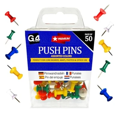 G4GADGET Push Pins Assorted 50 Pack Colourful Thumb Tacks, Drawing for Cork Board, Notice Map Marking, Home Office School Use