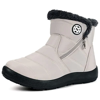Gaatpot Women Winter Warm Snow Boots Ladies Slip On Water resistant Outdoor Fur Lined Ankle Booties Shoes Beige Size 6 UK /245(39) CN