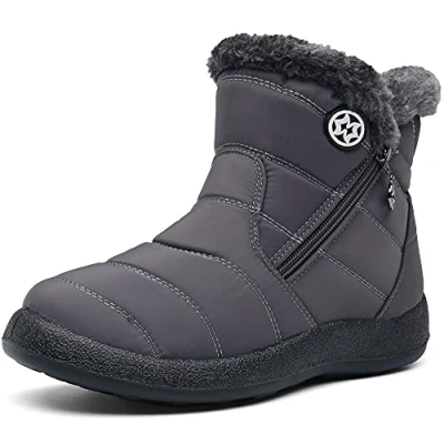 Gaatpot Women Winter Warm Snow Boots Ladies Slip On Water resistant Outdoor Fur Lined Ankle Booties Shoes Grey Size 6 UK /245(39) CN