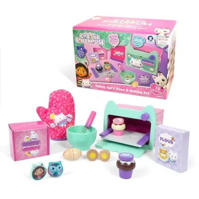 Gabby’s Dollhouse Baking Playset Kids' Pretend Bake & Play Kit with Mixing Bowl, Whisk, Flour, Eggs Oven Fun Role Toy for Toddlers Children Toys Boys