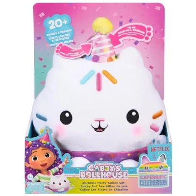 Gabby's Dollhouse Celebrations, Sprinkle Party Cakey Cat Soft Toy, 25 Centimetre Interactive Toy with Sounds, Kids’ Toys for Girls and Boys Aged 3+