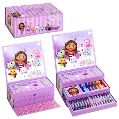 Gabby's Dollhouse Kids 34pc Colouring Art Stationery Set with Watercolour Felt Tip Pens Crayons and Pencils Travel for Children