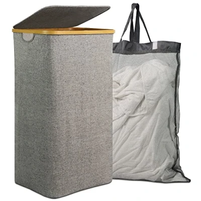 Gadgy Laundry Basket with Lid, Narrow Hamper, Removable Bag, Bamboo Collector, Foldable, Large 103 Litres, Baskets