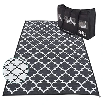 Gadgy Outdoor Rug Weatherproof Stylish Balcony Waterproof and UV Resistant Reversible Garden Black with Carry Bag 230 x 160 cm