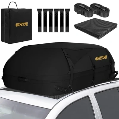 GADLANE Car Roof Bag 20 Cubic Feet (550L) Waterproof Boxes for Cars with/without Rack with 6 Sturdy Straps, Anti Slip Mat & Storage Cars, SUVs, Holidays Box (Black)