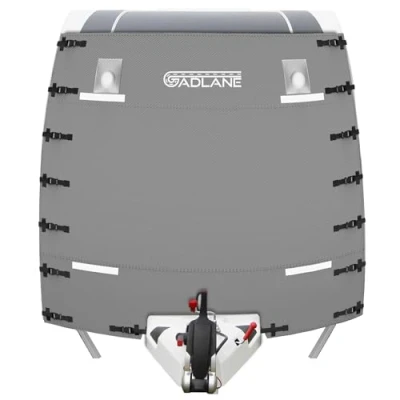 ULTIMATE PROTECTION & DURABILITY: Crafted from premium quality four-layered non-woven reinforced polyethylene fabric, this front caravan cover provides comprehensive protection against the elements. Shield your investment from potential hazards like stone chips, cracks, debris, dirt, dust, and even intrusive bugs. HIGH VISIBILITY & REFLECTIVE SAFETY: Enhance your towing experience with the GADLANE Caravan Front Cover featuring integrated High Visibility LED Lights and Reflective Strips. Whether you're navigating dimly lit roads or setting up camp at night, these safety features ensure that you and your caravan remain visible to other motorists, promoting safe travels. NOSE WEIGHT OPTIMISATION: Engineered for efficiency, the GADLANE motorhome & trailer Covers strike the perfect balance between strength and weight. Designed to be sturdy yet lightweight, it won't compromise the nose weight of your caravan while towing. Experience smoother handling and peace of mind, knowing that your caravan's stability remains uncompromised. EASY STORAGE & PORTABILITY: Our caravan towing front cover is not just about protection; it's also about levelling up the convenience of caravan accessories and caravan equipment. The included breathable, compact, and lightweight carrying case ensures effortless storage without taking up valuable space in your caravan. Whether you're on the road or at home, keeping your cover neatly stored has never been easier. UNIVERSAL FIT & ADJUSTABLE STRAPS: Versatility meets practicality with our universal-sized front caravan cover. Compatible with renowned brands like Bailey caravans and Swift caravans, this cover is designed to accommodate a range of models. The seven adjustable, double-stitched securing straps provide a snug fit, and they can be extended by up to 10 inches on either side. This feature allows you to adapt the caravan front cover protector to different awning channel placements.