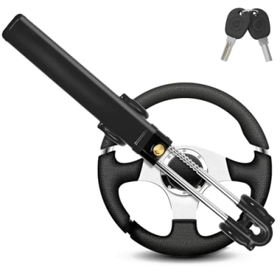 SECURE AND HEAVY DUTY - Fortify your vehicle with car steering locks: The Twin Bar Steering Wheel Lock is constructed with high-quality materials, offering maximum durability and strength. Its solid metal body, combined with a soft coating, provides a secure grip on your steering wheel while protecting it from scratches and damage. EASY TO LOCK, TOUGH TO REMOVE - Thwart Thieves' Attempts: Locking your steering wheel is effortless with our user-friendly design. However, removing it without the keys is an entirely different challenge. The Twin Bar Car Wheel Lock has an advanced locking mechanism which makes it extremely difficult for thieves to tamper with or remove. UNIVERSAL COMPATIBILITY - Fits Most Vehicles: GADLANE Car Steering Wheel Locks are designed to fit a wide range of vehicles and brands. You can trust that it will securely lock your steering wheel, adding an extra layer of protection to your valuable possession. Works with various cars, vans, caravans and more! EASY TO STORE - The car security steering lock is incredibly easy to store when not in use, such as in your boot, or down the side of your car seat. The discreet black colour of this car immobiliser blends into the interior of your car, making it perfect for those seeking additional car theft protection without drawing attention. 2 SETS OF KEYS - Always Have a Spare: We provide you with not just one, but two sets of keys for your anti theft car lock. Keep one set at home and one in your possession, ensuring that you're never left stranded in case of a misplaced or lost key., Manufacturer: GADLANE