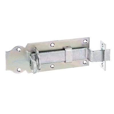 With flat handle with attached strike plate Design : crimped With countersunk screw holes The material is made of galvanised yellow zinc-plated steel, Manufacturer: Gust. AlbertsGmbH & Co.KG