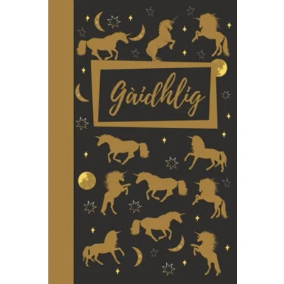 Gàidhlig: Scottish Gaelic Golden Unicorn Stars Moon Notebook Journal Learner Diary