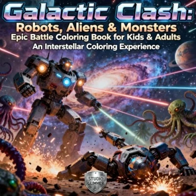Galactic Clash: Robots, Aliens & Monsters Epic Battle Coloring Book for Kids Adults