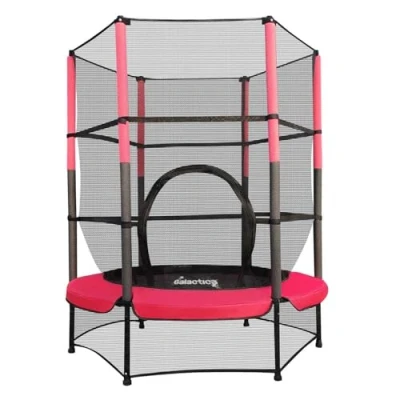 ManoManoGeneral description GALACTICA Children’s Mini Trampoline is a colorful and fun 4.5FT kids rebounder designed for endless bouncing enjoyment. It features a rust-resistant, powder-coated frame and a USA-made polypropylene jump mat, ensuring durability and safety for your children. Technical specifications Color: Red Diameter: 4.5FT - 55" - 140cm Overall height: 160cm Jumping Mat: UV resistant black PP material Frame Tube: 6 pieces, 25mm (Dia) × 1mm Bungee cords: 30 pieces Pad: PVC + Middle EPE foam 6mm Legs: 6 pieces, 25mm (Dia) × 1.0mm, 35cm height Safety Net: PE material, 125cm height Pole: 6 pieces, 25mm (Dia) × 1.0mm, with EPE foam Max Load: 45KG Carton Size: 750 × 270 × 240 mm Weight: N.W.: 11KGS; G.W.: 12KGS Other information Thick foam padding with vinyl covering over the extra heavy-duty bands Enclosure made from UV resistant mesh fabric with elastic net straps sewn in and features an easy entry zipper enclosure Anti-slip foot cover