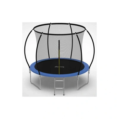 General description This GALACTICA Trampoline is designed for kids aged 3 and up, providing a safe and fun environment for jumping and play. It features a spacious jumping area with a protective enclosure net and curved safety poles that enhance safety by increasing the distance between the net and the frame. Built with durable materials, this trampoline is suitable for both indoor and outdoor use, ensuring year-round enjoyment. Technical specifications Model No.: GT-TS-07 Colour: Blue Frame Diameter: 8 feet (2.44m) Frame Height: 500mm Jumping Mat: UV resistant black PP material Spring Cover Pads: 150g/m2 PVC + 110g/m2 PE; 12mm thickness; Width: 225mm Frame Tube: Galvanized 38mm (Dia) 1.1mm Springs: 42pcs 3.0mm (Dia) * 25N * L130mm Legs: 3pcs, galvanized 35mm (Dia) 1.1mm Safety Net: PE mesh 95g/m2 Pole: 25mm (Dia) 1.1mm, 6pcs; Covered with EPE Foam Ladder size: 55*31cm; with 2 steps Enclosure height: 150cm Max Load: 50kg Carton1 Size: 1320*440*200mm; N.W.: 22KGS; G.W.: 24KGS Carton2