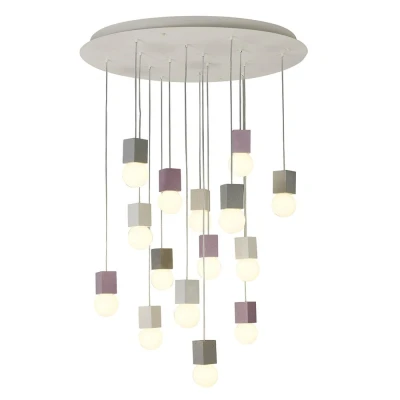 The Galaxia Pendant Square light is an eye-catching centerpiece with 15 light sources, delivering ample brightness and stylish design. Its modern aesthetic in white, grey, and red cement adds a unique flair to any interior space.