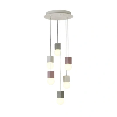 Galaxia Pendant Square, 6 Light E27, White / Grey Red Cement, Base & Cable