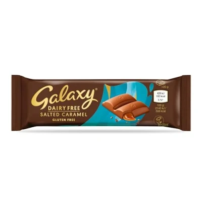 Flavoursome Chocolate: Indulge with the delicious combination of rich cocoa blended with smooth and creamy hazelnut paste with caramel filling; Enjoy a moment of vegan pleasure from Galaxy; Suitable for Vegans and Vegetarians; The Galaxy range is also Gluten Free Dairy Free: Galaxy Vegan bars are a dairy-free alternative range made with creamy hazelnut paste, meaning you can still experience the pleasure of silky smooth milk chocolate without having to compromise on taste; The Galaxy Vegan range is registered with the Vegan Society Product Size: Each pack of Galaxy Vegan Salted Caramel contains 24 x 40g bars