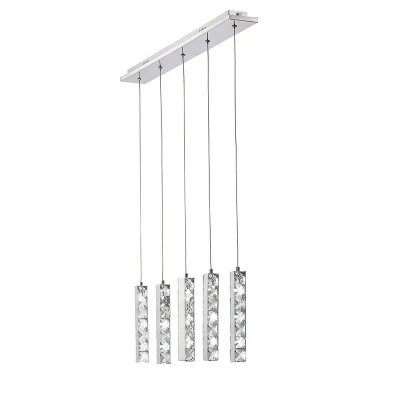 Galaxy Linear Pendant 5 Drop 15W LED 6000K Polished Chrome, Crystal