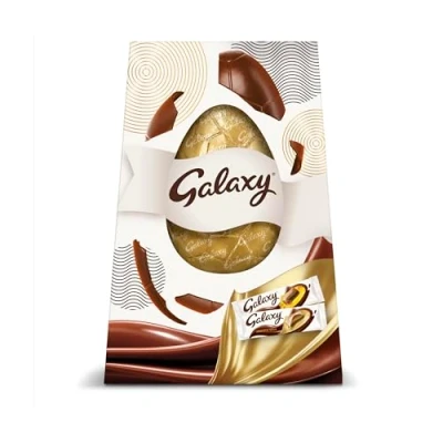 An Extra Large Easter Egg of sheer Indulgence, Crafted from smooth Galaxy Milk Chocolate, Including two bars of Galaxy Milk chocolate and one bar of Galaxy Caramel Gift This Extra Large Easter Egg To A Chocolate Lover, Add To An Easter Hamper Or Share This Easter Treat With Friends And Family Add Luxury To Your Long Easter Weekend, This Egg Would Make A Grand Prize For An Easter Egg Hunt This Easter Egg Carton Is Fully Recyclable, To Recycle The Foil, Ask At Your Local Recycling Centre 1x hollow milk chocolate Easter Egg with two 42G Galaxy Milk Chocolate bars and one 48G Galaxy Caramel Chocolate bar, total weight 252g, Suitable for vegetarians and certified by Rainforest Alliance.