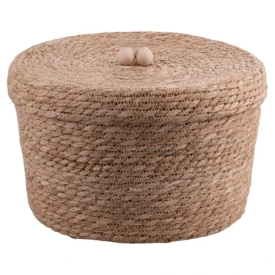 Sibilla multipurpose basket Made of natural fibre (Seagrass) Lid with wooden handle (Poplar) Woven weave Round design Boho Chic style Fits different environments of the home Dimensions: Ø 32 x h. 21 cm Colour: natural fibre Sibilla multi-purpose basket; natural fibre (Seagrass) Lid with wooden handle (Poplar); Braided weave Round Design; Boho Chic Style Suitable for different rooms in the house; Dimensions: Ø 32 x h. 21 cm