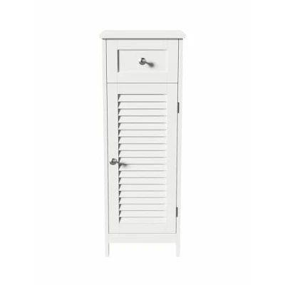 Sìordine cabinet 1 slat door with internal shelf 1 drawer Made of lacquered MDF wood. Structure in LDF wood (chipboard). Thickness: 3/12/15 mm. Iron knobs Dimensions: L. 32 x D 30 x H 87 cm Maximum load 5 kg per shelf Simple to assemble Mounting kit included Colour: white silver knobs Sìordine cabinet. Colour: white silver knobs; 1 slat door with internal shelf 1 drawer; lacquered MDF wood LDF wood frame (chipboard); thickness: 3/12/15 mm Iron Knobs; Size: L 32 x D 30 x H 87 cm