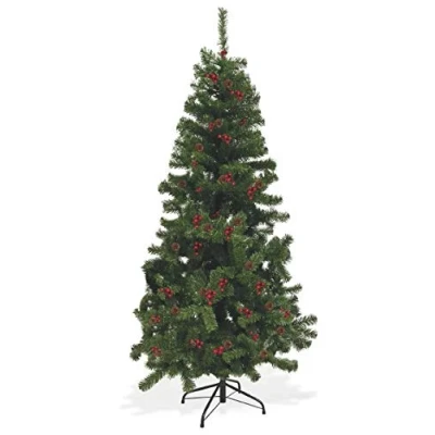 Sestriere Christmas Tree Colour: Green With 22 pine cones and 22 berries PVC 500 branches Metal base Easier mounting To obtain a thicker effect, after mounting and opening it is advisable to wait a day before proceeding with the decorations. PVC will have the time necessary to resume the natural volume giving the tree a realistic effect. Measurements: h. 180 cm