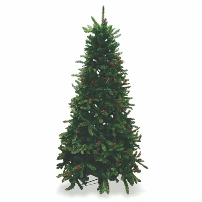 Nevada Santa's House Christmas tree Made of PVC and iron Light and voluminous 1600 branches Red berries in expanded polystyrene Green iron base with 4 feet Easy assembly Dimensions: Ø 140 x h. 240 cm; base diameter: 71.5 cm. To achieve a thicker effect, it is advisable to wait a day after mounting and opening. Nevada Santa's House Christmas Tree. Colour: dark green; PVC and iron Lightweight and voluminous; 1600 branches Red berries made of expanded polystyrene; Green iron base cross with 4 feet Easy to assemble; Dimensions: Ø 140 x H 240 cm; base diameter: 71.5 cm