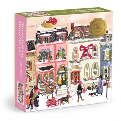 Galison Snowfall On Main Street 1000 Piece Foil Jigsaw Puzzle Featuring Beautiful Artwork Of Snowy Christmas City Streets