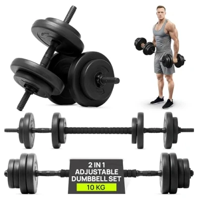 VERSATILE WEIGHT SET: Gallant Sports Adjustable Weights Dumbbells Set with Barbell elevates your workouts and health goals. Perfect for crafting diverse exercises, these weights dumbbells set for home & gym help enhance cardiovascular fitness, burn calories, build strength, and improve endurance for any sport or activity. Designed to meet your fitness needs, it’s ideal for both beginners and seasoned athletes aiming to achieve peak performance anytime, anywhere! QUICK AND EASY TO USE: Adjustable dumbbells weights set for men and women are an excellent choice for creating a compact home gym system, perfect for any strength training workout routine. With this 20Kg dumbbell set, you can perform chest presses, squats, lunges, curls, rows, and a variety of other exercises to target multiple muscle groups. Ideal for fitness enthusiasts of all levels, it offers versatility and convenience to maximize your workouts in a small space. DURABLE AND BUDGET FRIENDLY: The vinyl-coated design of these weights dumbbells and barbell set for home & gym safeguards your dumbbells against everyday wear and tear, ensuring long-lasting use. With the Gallant Adjustable Weights Dumbbell and Barbell set, you get the versatility of two weights sets in one, saving money while achieving your fitness goals. This innovative weights barbell set is perfect for building strength and endurance without the need for additional equipment. EFFORTLESS ADJUSTMENTS & SPACE-SAVING DESIGN: The adjustable dumbbells feature user-friendly screw locks, enabling quick and hassle-free weights changes to customize your workout. Designed with convenience as a priority, this versatile weights dumbbell set for men and women can be stored compactly, making it perfect for home gyms or small spaces. Whether you're targeting strength, endurance, or toning, this barbell weights set provides a seamless solution for achieving your training goals. COMPREHENSIVE PACKAGE & RETURNS: Includes 4 x 1KG plates, 4 x 1.25KG plates, 4 x 2.5KG plates, 2 dumbbell bars, 4 spin locks, and 1 center connector. This complete adjustable-weights dumbbell set for men and women has everything you need for versatile workouts. If you’re not fully satisfied with your purchase, we offer a full money-back refund, ensuring satisfaction with your choice and assurance as you work toward your fitness goals.