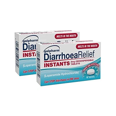 EFFECTIVE -- Galpharm Anti-Diarrhoea Instants 2mg Orodispersible Tablets contain Loperamide Hydrochloride which is an antidiarrheal medicine which helps to stop diarrhoea by making the stools more solid and less frequent. FAST RELIEF -- Fast acting tablets help to stop diarrhoea by making the stools more solid and less frequent. They work fast to soothe your diarrhoea symptoms. SO YOU CAN LIVE YOUR LIFE -- Provides effective relief from acute and mild diarrhoea, allowing you to get back to doing the things you love. SAFE FOR ADULTS AND TEENAGERS -- This medicine is used for the treatment of sudden short-lived (acute) attacks of diarrhoea in adults and children of 12 years and over. Package contents: 2 packs of 6 tablets each. Actual packaging may vary.