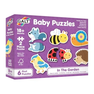 Galt Baby Puzzles In The Garden Fun, Colourful 2 Piece First Jigsaw Set of 6 Chunky For Babies Develop Early Learning, Matching & Motor Skills Ages 18 Months +