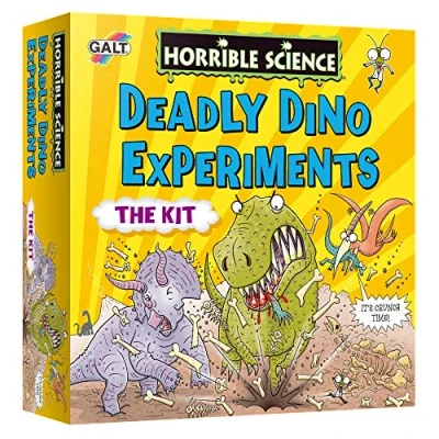 EDUCATIONAL TOYS FOR KIDS: Horrible Science Deadly Dinos provides an intro to the fascinating world of science, doubling as an educational toy for early STEM learning and a fun project for children FULL KIT: With excavation stone, tools, dinosaurs, goggles, slime egg, ornithopter, skeleton, clay, footprints mould, sand, cornflour, tray, card quicksand pieces, dino skull card pieces and notebook FOSSIL DIGGING KIT FOR KIDS: Children can dig up dinosaur fossils, build a trex skeleton, triceratops skull and make a terrifying pterodactyl ornithopter, Wind it up and watch it soar through the sky! HORRIBLE SCIENCE RANGE: The range, based on the bestselling books written by Nick Arnold and illustrated by Tony De Saulles, includes an array of fun and practical science experiments for children DISCOVER DINO FACTS: Discover the demise of the deadly dinosaurs through interactive play, Dig up dinosaur fossils, experiment with quicksand traps and amber slime, For kids ages 8 years plus, Manufacturer: Galt Toys