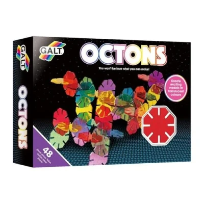 Simple octagonal pieces in translucent colours which interlock easily to make a wide variety of models Create a plane, dinosaur or dog following the illustrated models in the guide or design your own A creative and versatile construction set for younger children Contains 48 translucent Octons in 6 assorted colours and step by step guide Suitable from age 4 and up, Manufacturer: Galt Toys