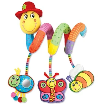 A soft friendly worm with 3 hanging toys. Attach to a cot, pushchair or car seat. Wrap the wiggly body around and secure with Velcro straps. Includes a Ladybird Mirror, Crinkle Butterfly and Bee rattle. Age: Suitable from birth., Manufacturer: Galt Toys