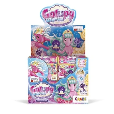 🦄 UNIQUE DESIGN: Galupy Mermaid unicorn toys combine magical unicorns with shimmering mermaid tails in glitter, pearl, metallic and colour-change effects, perfect unicorn gifts for girls. 🌊 UNDERWATER WORLD: These enchanting girls toys live in the magical realm of Marea, bringing the beauty of unicorns and mermaids together, ideal toys for 6 years old girls and princess toys. ✨ MAGICAL POWERS: Each unicorn toy is said to have special powers, making them the perfect companion for play, comfort, collecting or swapping, ideal unicorn teddy and girls birthday presents. 💎 RARE FIGURES: Two special unicorn toys feature golden and purple tails, decorated with Swarovski crystals, pearls or necklaces, collectible horse toys that inspire imagination and play. 🎁 COMPLETE SET: Includes 20 Galupy Mermaid unicorn toys in a treasure chest display case plus collector’s guide, magical barbie unicorn style girls toys and great gift for any celebration., Manufacturer: CRAZE
