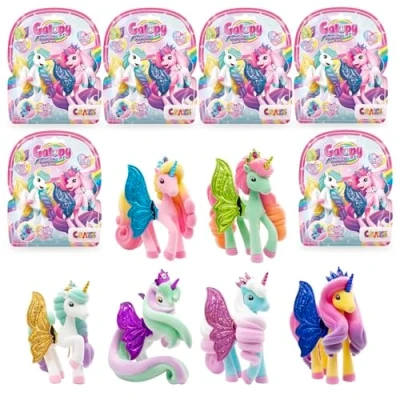 GALUPY Rainbow Unicorn Toy Figures 6 Pack Collectible Fantasy Animals with Glitter Wings and Swarovski Crystal Girls Toys, Princess Style Playset, Birthday Present Idea