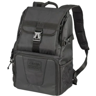 Gamakatsu G-Backpack - Dimensions: 43 cm x 29 cm x 20 cm - Including 5 tackle boxes - 1680D nylon - Water-resistant material - Sturdy zips - Rod holder on two sides - Adjustable inner compartment - Comfortable 3D mesh lining - Adjustable padded carry straps - Practical front compartment - Ideal for the roaming angler - Plenty of room for food and tackle Gamakatsu designed this backpack for the roaming angler who likes to bring enough tackle. This backpack comes with 5 tackle boxes that easily fit in the large compartment. The padded carry straps make transport very easy and comfortable.